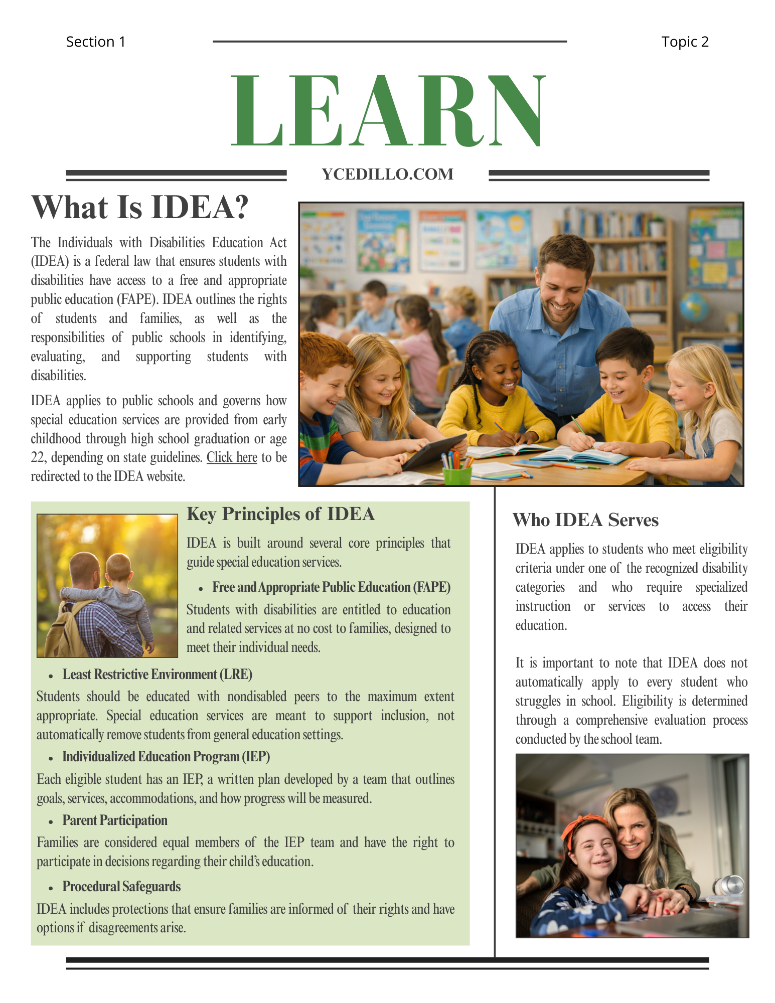 This resource is intended to help families gain a foundational understanding of IDEA and the legal framework that guides special education services.