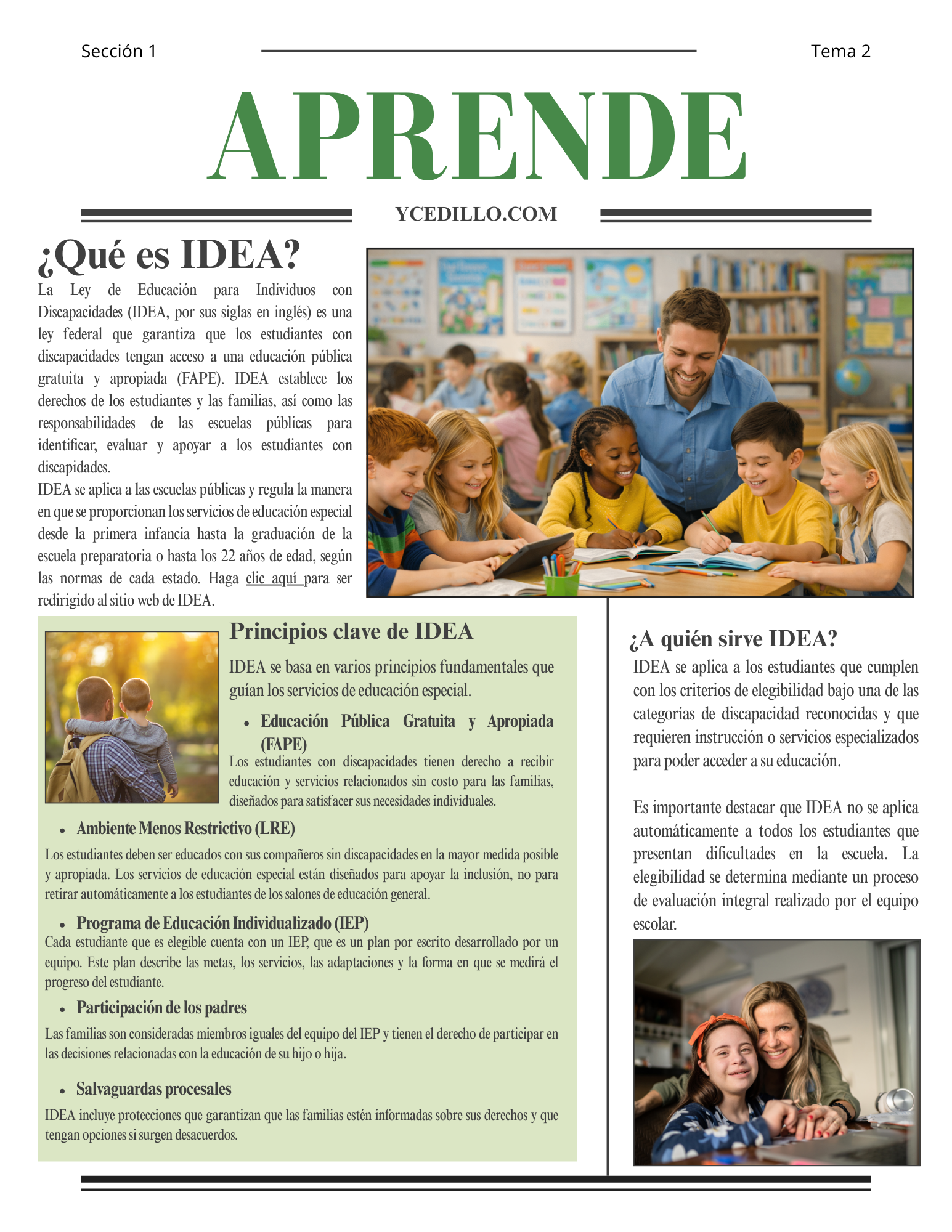 This downloadable PDF is designed as a brief, parent-friendly handout that provides a clear overview of the Individuals with Disabilities Education Act (IDEA). The document is already available in both English and Spanish and can be reviewed, saved, or shared with families as needed.